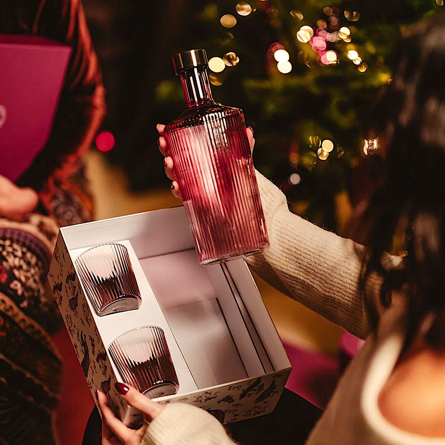 Mundgeblasene Flasche mit zwei Gläsern, verpackt in einer eleganten Geschenkbox. Die puristischen Glasobjekte des belgischen Herstellers Paveau runden die stilvolle Atmosphäre Ihres Tisches ab. Ob an einem Sommertag im Garten oder im Haus, ob allein, zu zweit oder in größerer Gesellschaft: Die optisch wie haptisch ungemein angenehmen Kunstwerke aus Glas bilden das stilvoll-zurückhaltende Zentrum eines gepflegten Tisches. Das 3-teilige Set in der kompakten Box ist stilvolles Mitbringsel und feines Geschenk für jeden Anlass.