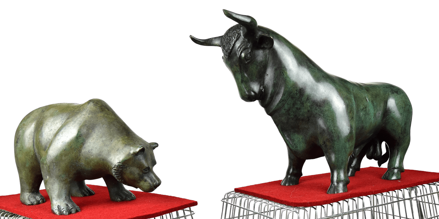 Kompakte Bronzefigur (28 cm) eines Bären, angelehnt an den vom Börsenplatz in Frankfurt/Main. Hier ein Symbol für Kraft und Nehmerqualitäten, für die Zuversicht, dass es auch mal wieder aufwärts geht. Für Sympathisanten der Baisse und ebenso für Tierfreunde. Passt in moderne Umgebungen in Garten und Haus.