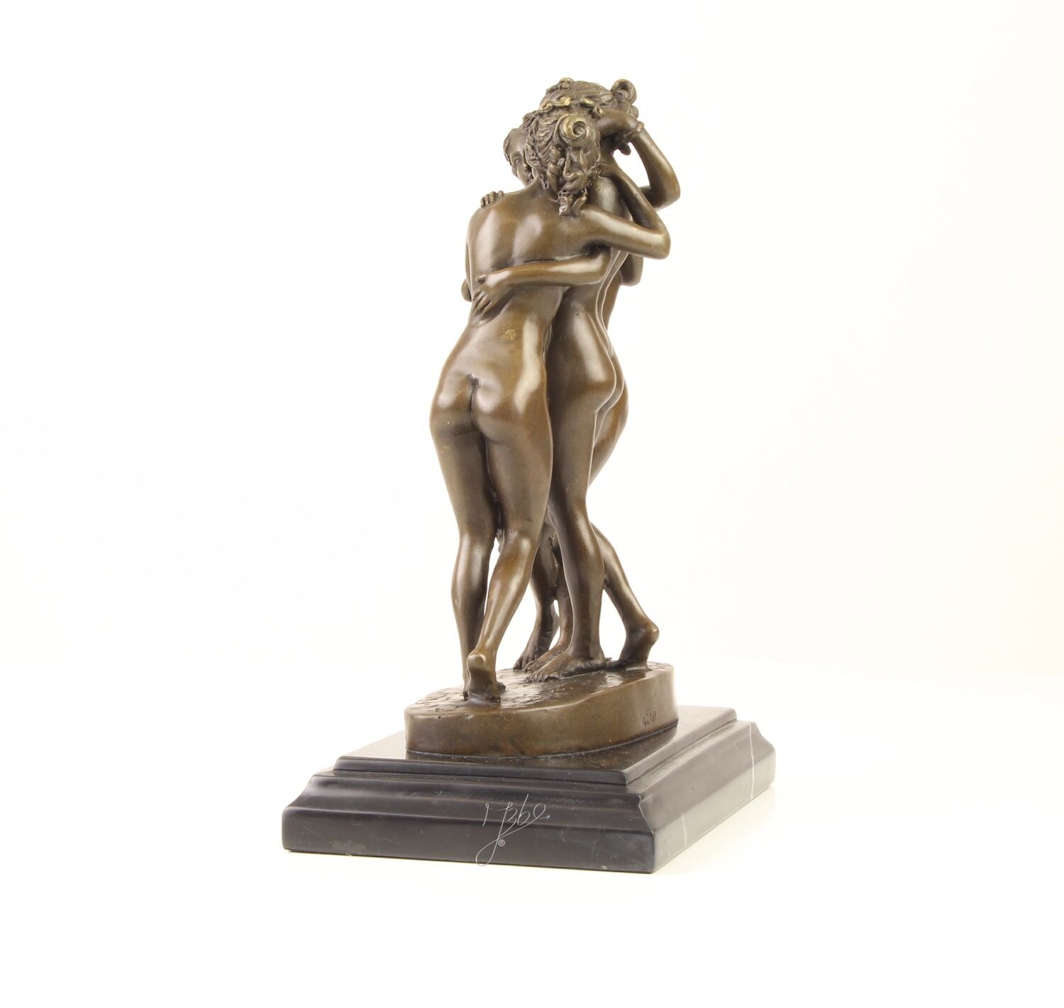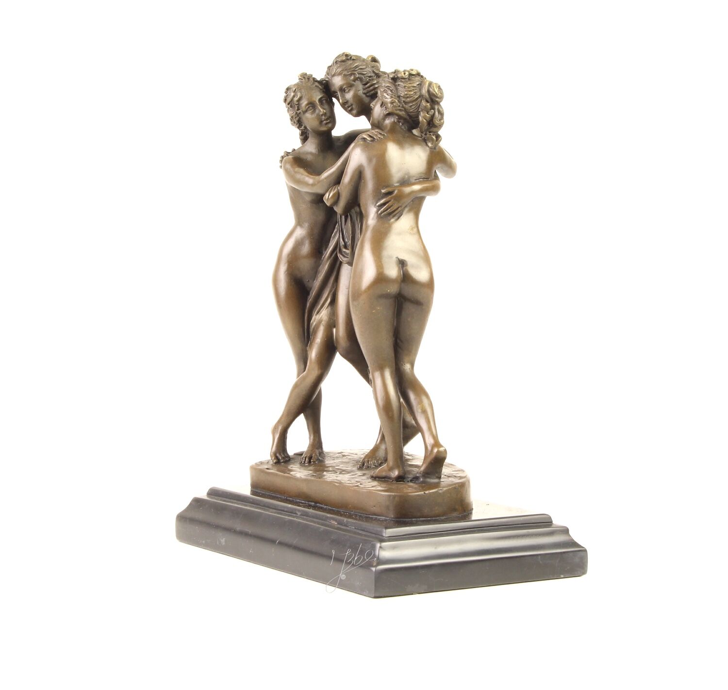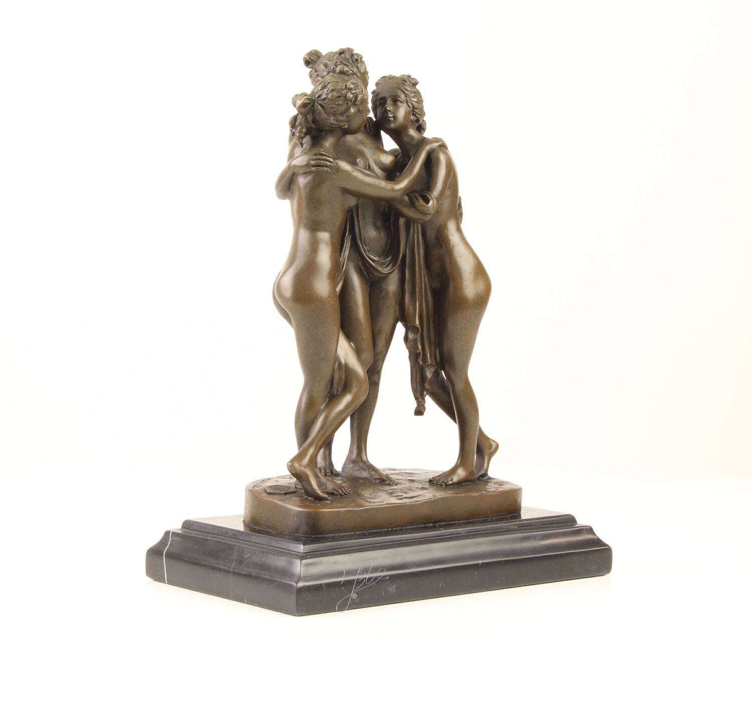 Kleine Replik aus Bronze auf Steinsockel der DREI GRAZIEN von Antonio Canova (1757 - 1822). Der bedeutende italienische Klassizist schuf eine der bekanntesten Darstellungen dieser drei "Untergöttinnen", von denen schon im 4. Jahrhundert erste Versionen entstanden. Auch Botticelli, Raffael und Lucas Cranach d.Ä. schufen weltberühmte, geradezu ikonische Werke mit diesem Motiv.Sie erhalten bei Patina Garden eine äußerst gelungene Miniatur der Drei Grazien, ein kompaktes Stück Weltkultur, das zu betrachten einfach Freude bereitet. Hier finden Sie eine etwas "säkularere" Version der Drei Grazien.