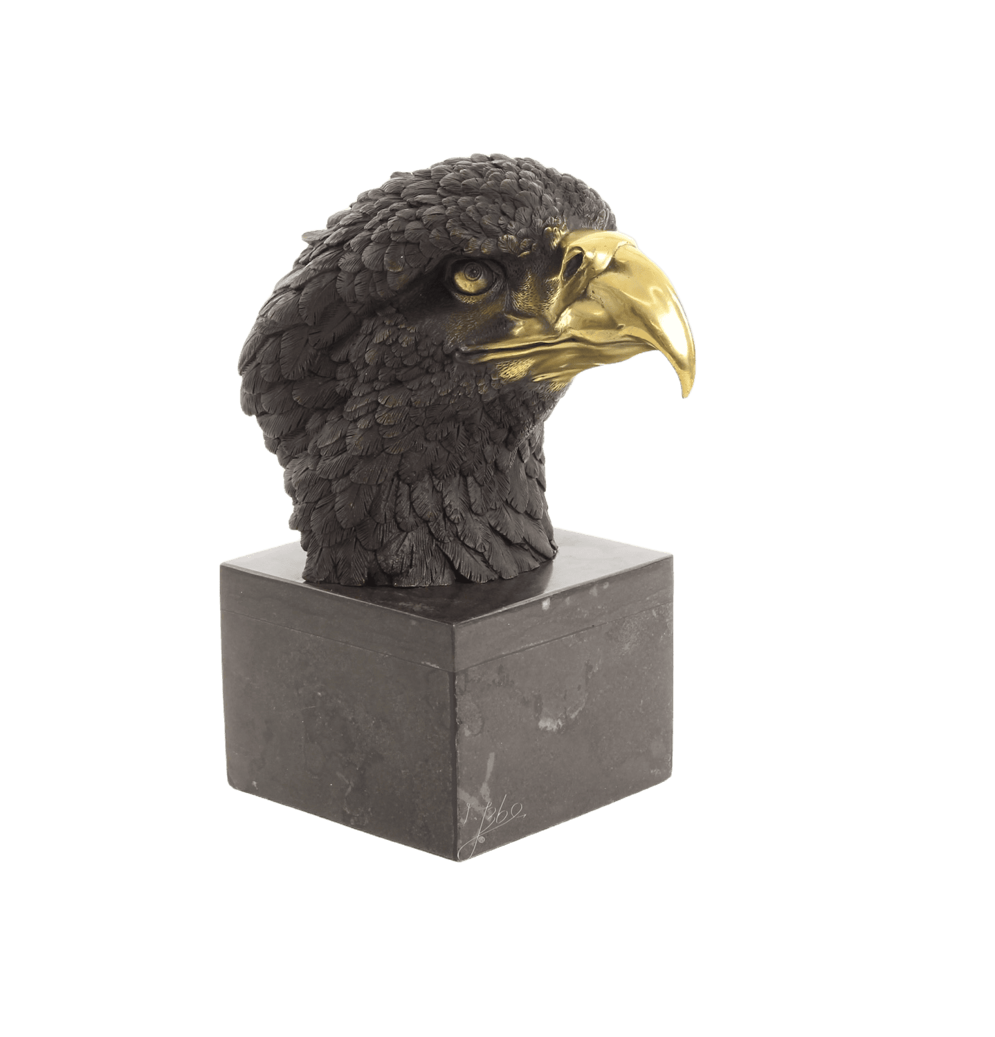 Bronzefigur KOPF DES ADLERS auf Steinpodest
