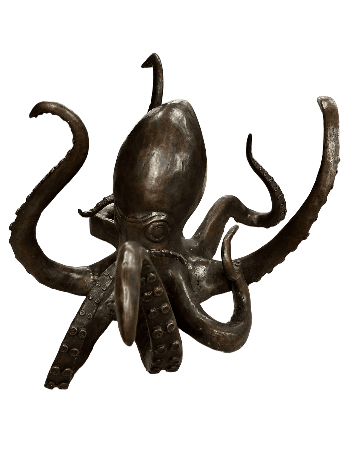Große Krake aus braun patinierter Bronze (70 cm). Ein naturgetreues Abbild dieses geheimnisvollen Meerestieres. Diese Bronzeplastik des Tintenfisches bzw. Oktopus findet am besten an einem Pool, einem Teich oder im SPA-Bereich seinen Platz.