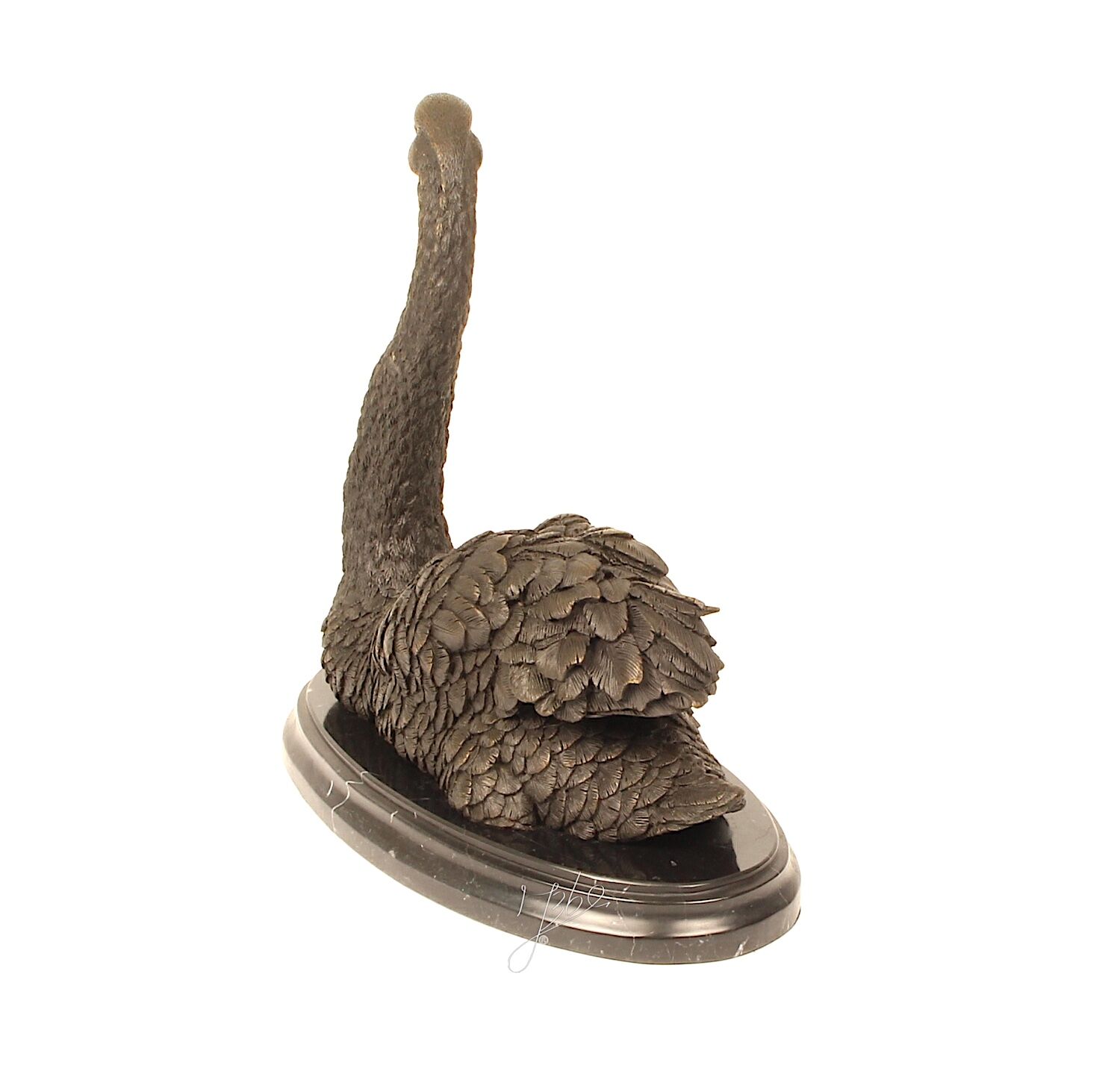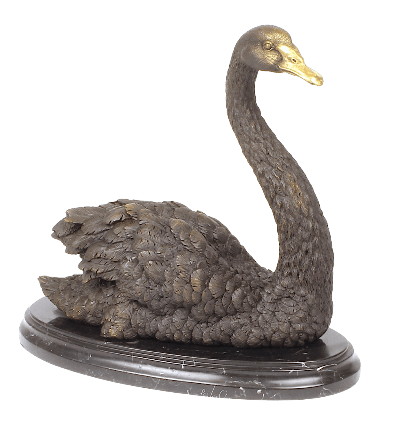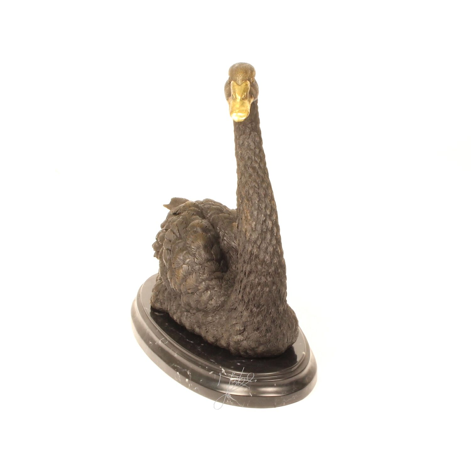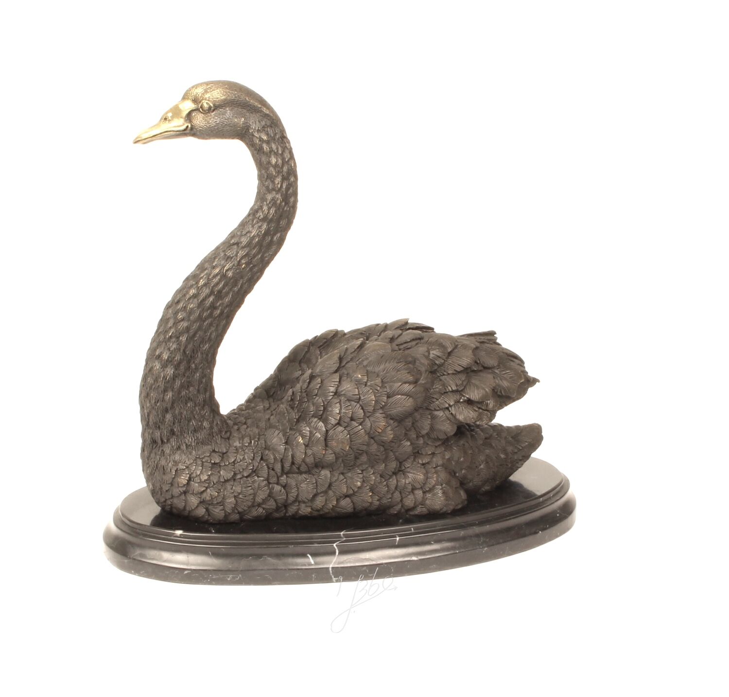 Bronzefigur Vogel SCHWIMMENDER SCHWAN auf Steinpodest