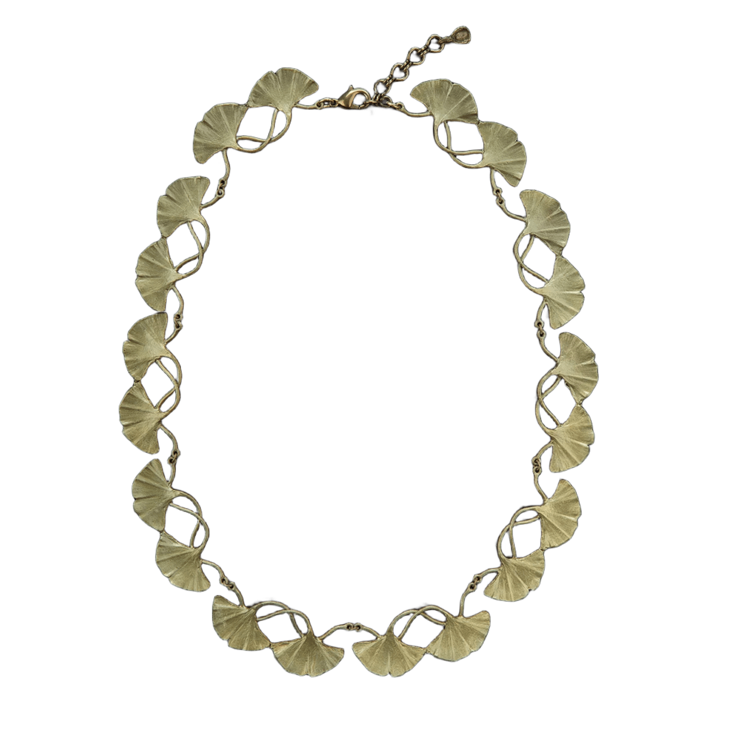 Eine Halskette aus den Blättern des Ginkgos, geschaffen aus handpatinierter Bronze. Jedes Schmuckstück liegt in einer attraktiven Geschenkbox.