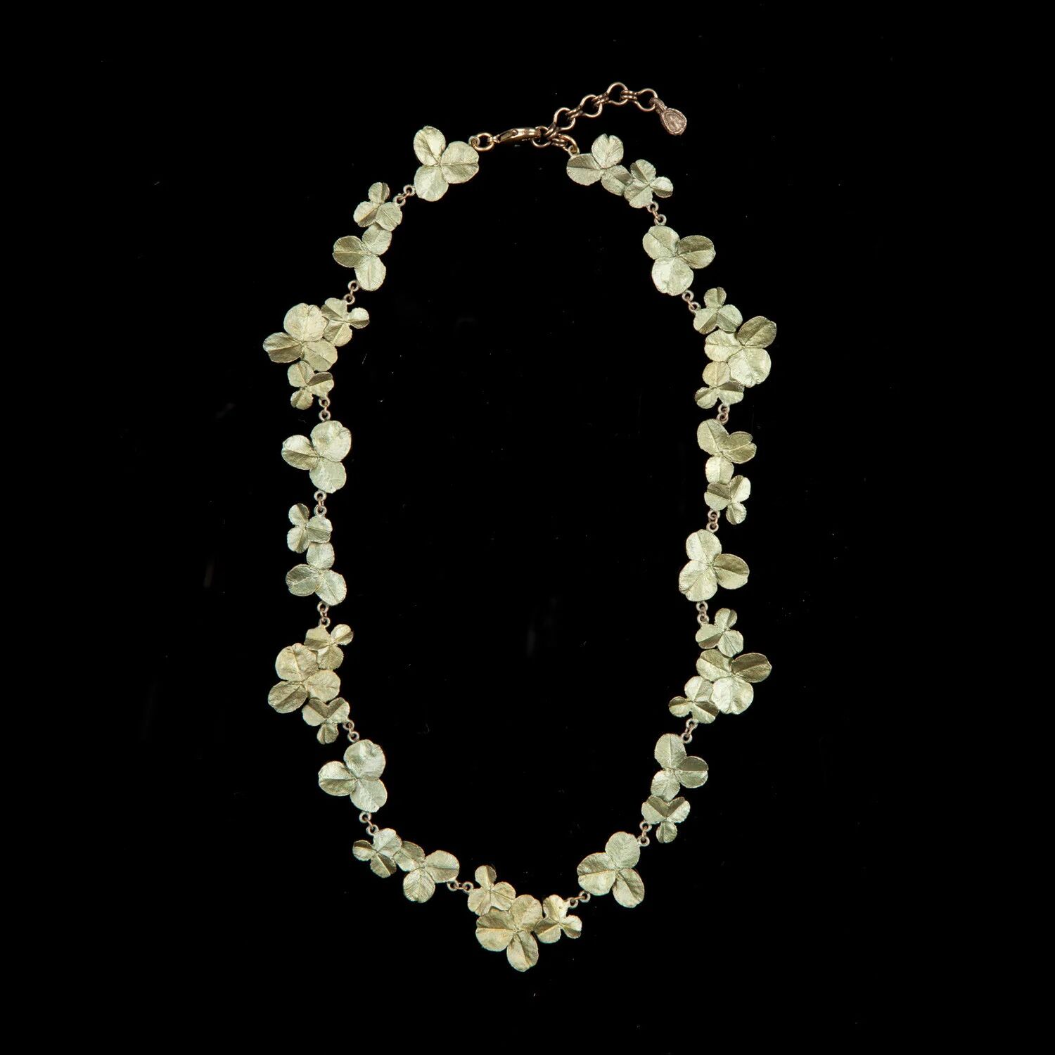 Ein Kunstwerk aus mehreren Kleeblättern, verewigt als Collier in handpatinierter Bronze. Eine attraktive Geschenkbox liegt bei.