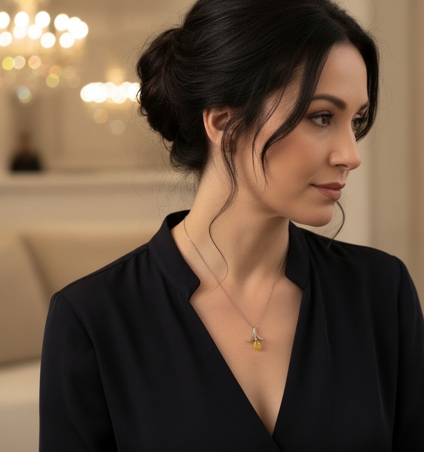Bronzeschmuck ZITRONE Halskette mit Anhänger Blatt