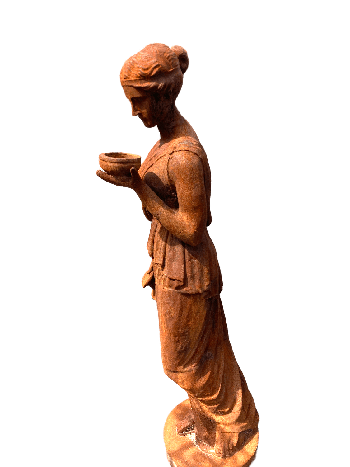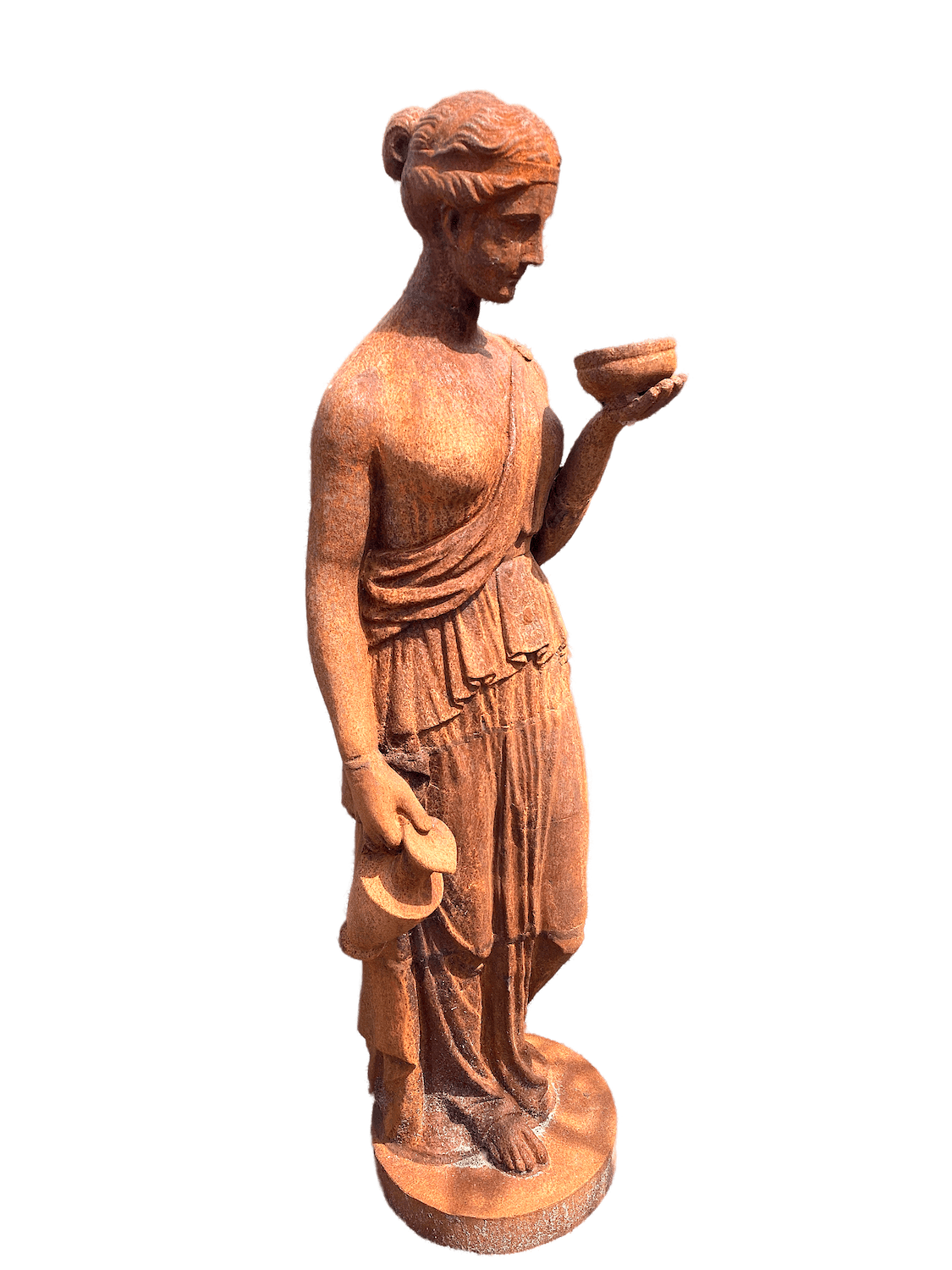 Die griechische Göttin HEBE gilt in der Mythologie als Göttin der Jugend. Sie konnte den Menschen eine neue Jugend schenken. Zudem war sie als Mundschenk der Götter aktiv und reichte Nektar und Götterspeise. Die hier zu sehende Version ist zweifellos eine der bekanntesten und schönsten. Sie stammt vom dänischen Bildhauer Bertel Thorvaldsen, geschaffen um 1806.