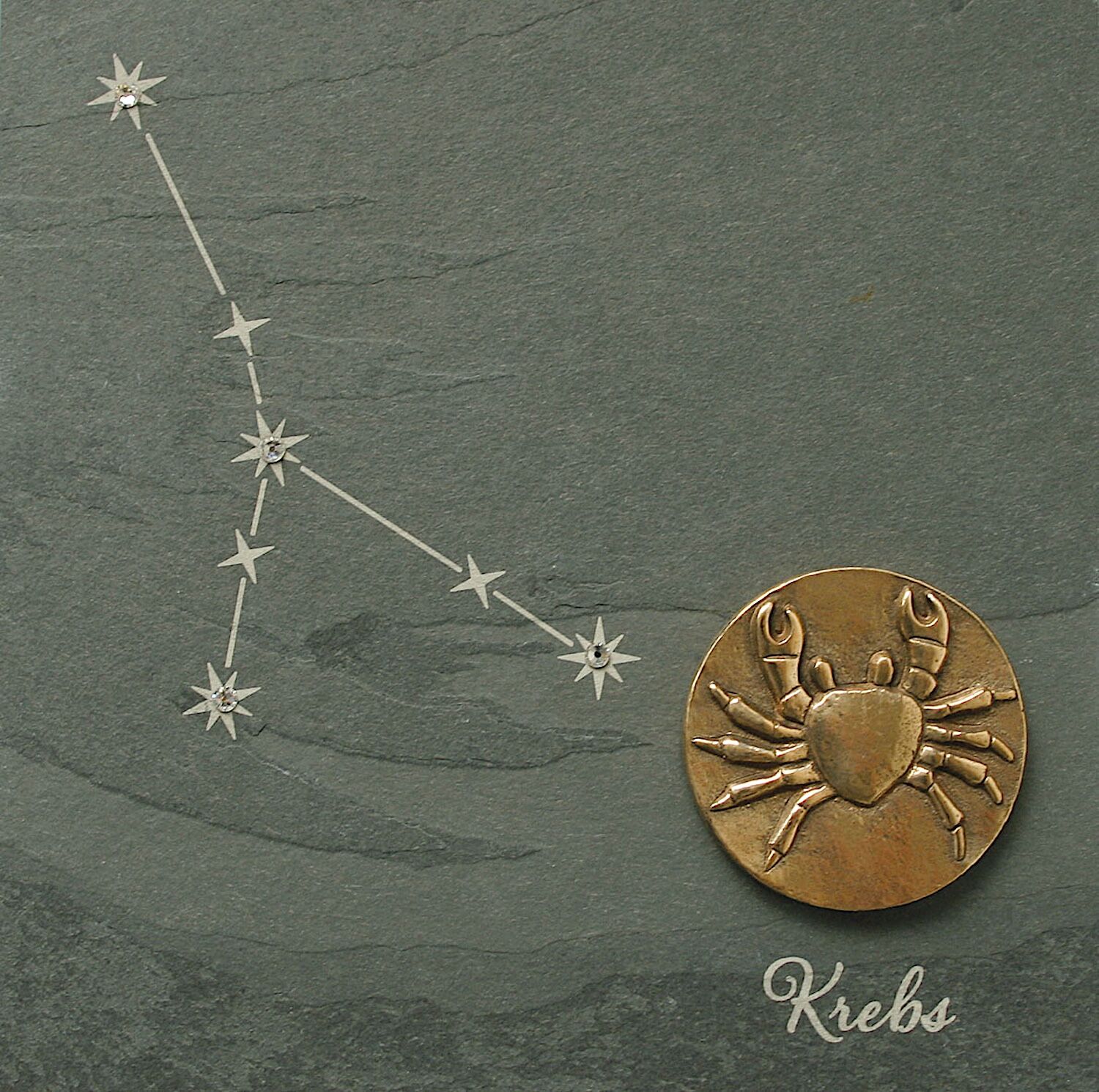 Sternzeichen KREBS, Bronze auf Schiefer mit Swarovski Elements