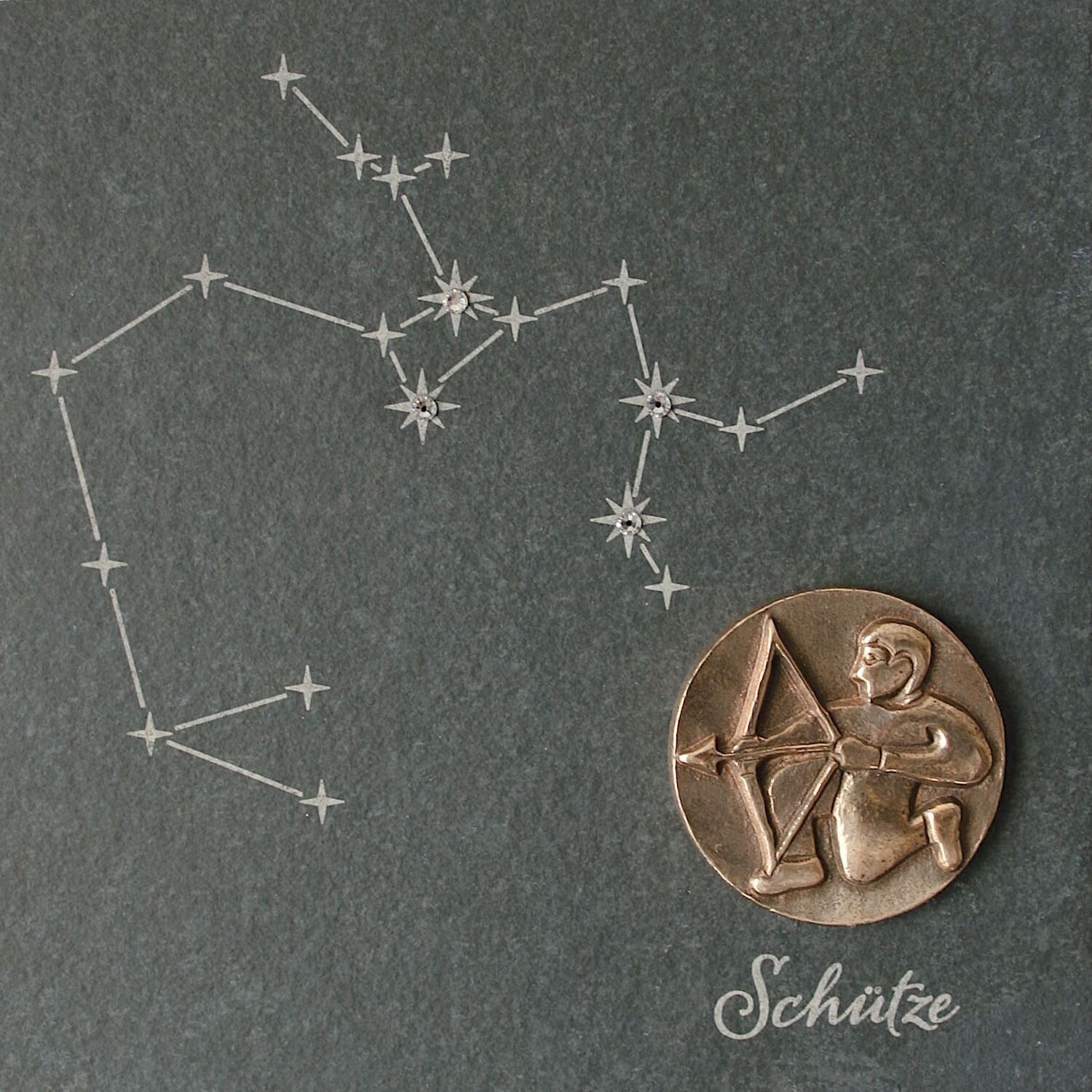 Sternzeichen SCHÜTZE, Bronze auf Schiefer mit Swarovski Elements