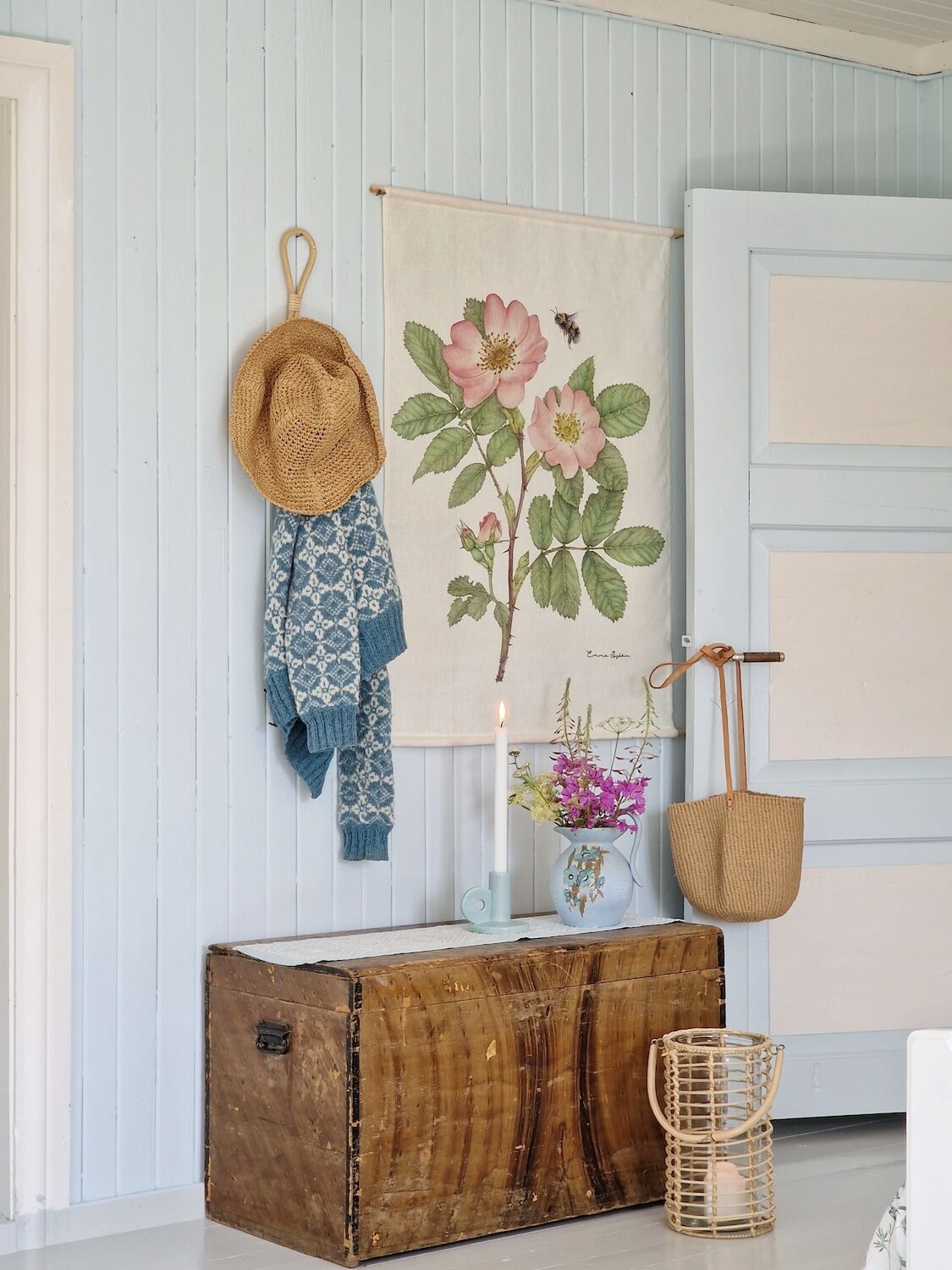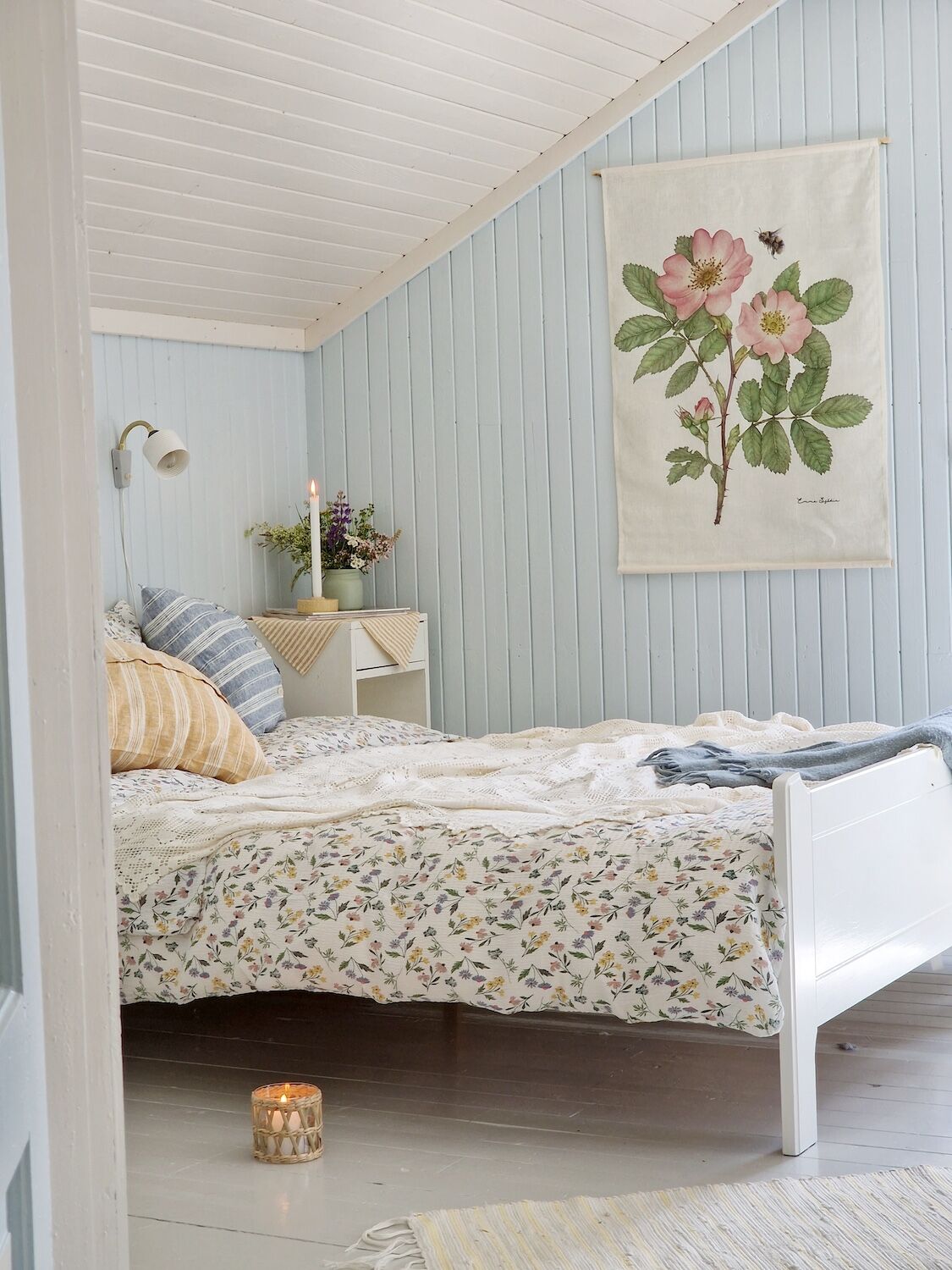 Die Kollektion 'Wildrose & Hummel' gehört zu Emma Sjödins botanischer Serie der skandinavischen Wildblumen und schönen Insekten. Emma hat hier ihre Favorittechniken Bleistift und Aquarell kombiniert und detailreiche, zeitlose Bilder erschaffen. Das Ziel war, den Aufbau der Knospen, die aufgeblühten Blumen, den Stamm und die Beschaffenheit der Blätter auf künstlerischem Wege zu zeigen. Die Modelle stammen aus eigenen Feldstudien und Kompositionen von Blumen der Sommerwiesen in Småland rund um ihr Anwesen. Die Hummel auf dem Bild gehört zu der Familie der Ackerhummeln, die man auf Wiesen, im Wald, in Parks und in Gärten findet.